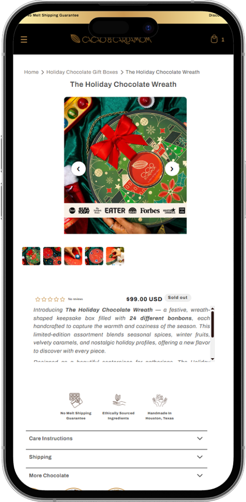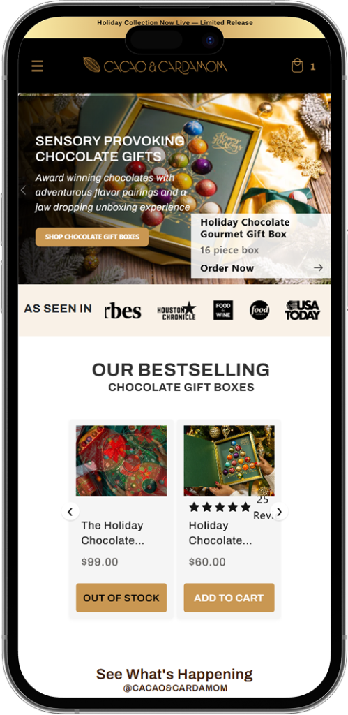 • A well-designed website is an extension of Cacao & Cardamom’s brand identity and tells the company’s story and showcases the artistry of their product line.