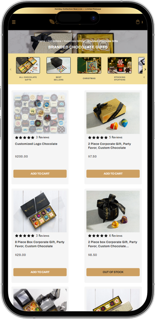 • Poor Representation of Products: The Company’s high-quality chocolate and gift box items needed to be visually represented and told a story about how premium they are.