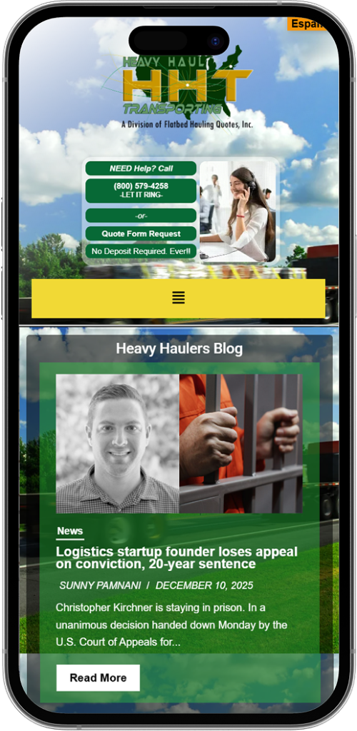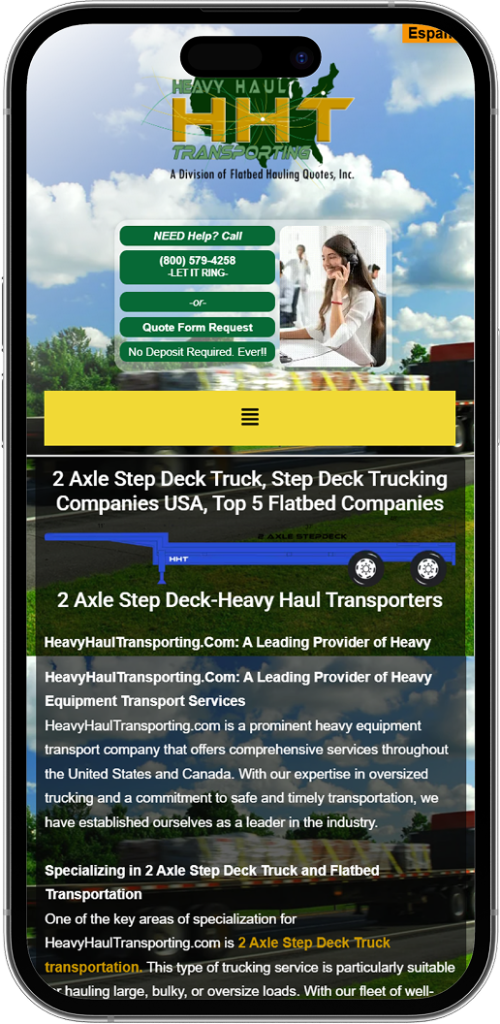 • Design Professional – The design of the website demonstrates the professionalism and knowledge of the Heavy Haul Industry. The website has an organized, clean look that establishes confidence with the user immediately.